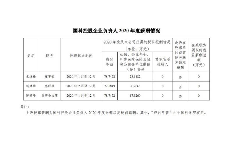 國科控股企業負責人2020年度薪酬情況