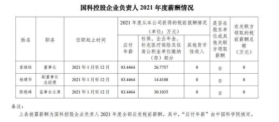 國科控股企業(yè)負(fù)責(zé)人2021年度薪酬情況